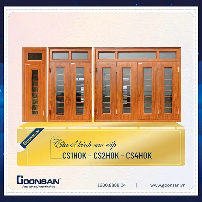 Cửa sổ thép vân gỗ cao cấp thương hiệu Goonsan